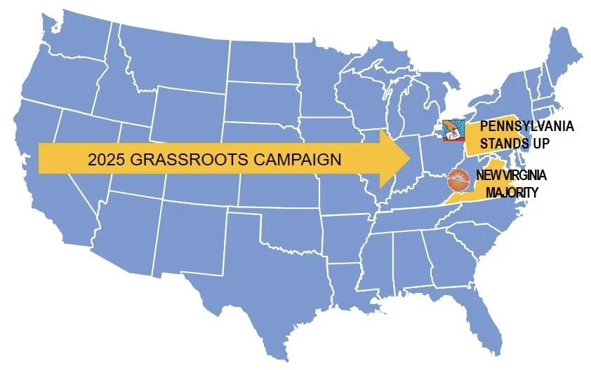 Virginia’s 2025 November 4th's election will determine whether Democrats or Republicans control the governorship and the legislature of this purple state, the only Southern State to maintain access to abortion rights. Control of these key political positions is the best way for Democrats to counter the GOP assault on free & fair elections. Our strategy is to support a very effective grassroots group called New Virginia Majority. They organize year-round for racial, economic, and environmental justice through political education, mass-scale voter outreach & mobilization, and intensive leadership development. With their help, we will elect Abigail Spanberger as governor and preserve the progressive legislature.